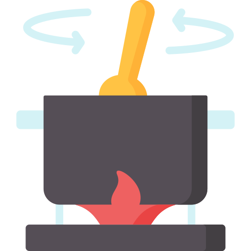 We stir continuously for an hour or until the water evaporates and the mixture becomes solid and sticky
